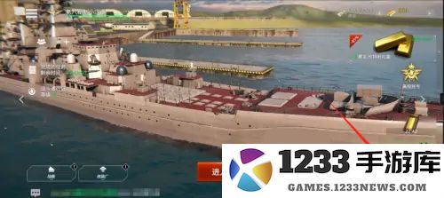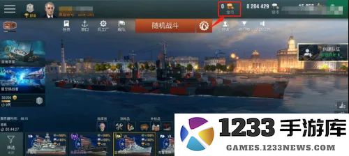 运行现代战舰,进入游戏界面后选择右上角金币选项,点击打开。